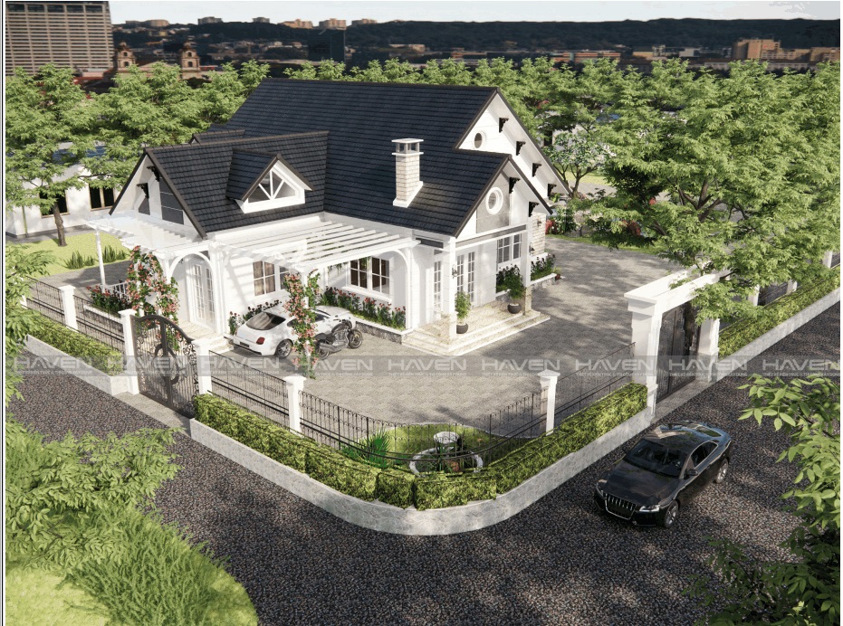 Khác với mái bằng truyền thống, các thiết kế biệt thự hiện đại năm 2024 thường sử dụng mái dốc hoặc mái Thái, không chỉ tăng tính thẩm mỹ mà còn giúp thoát nước hiệu quả và giữ ấm tốt hơn. Haven có kinh nghiệm trong việc thiết kế các mẫu Nhà cấp 4 mái thái và Biệt thự Tân cổ điển kết hợp các yếu tố hiện đại.